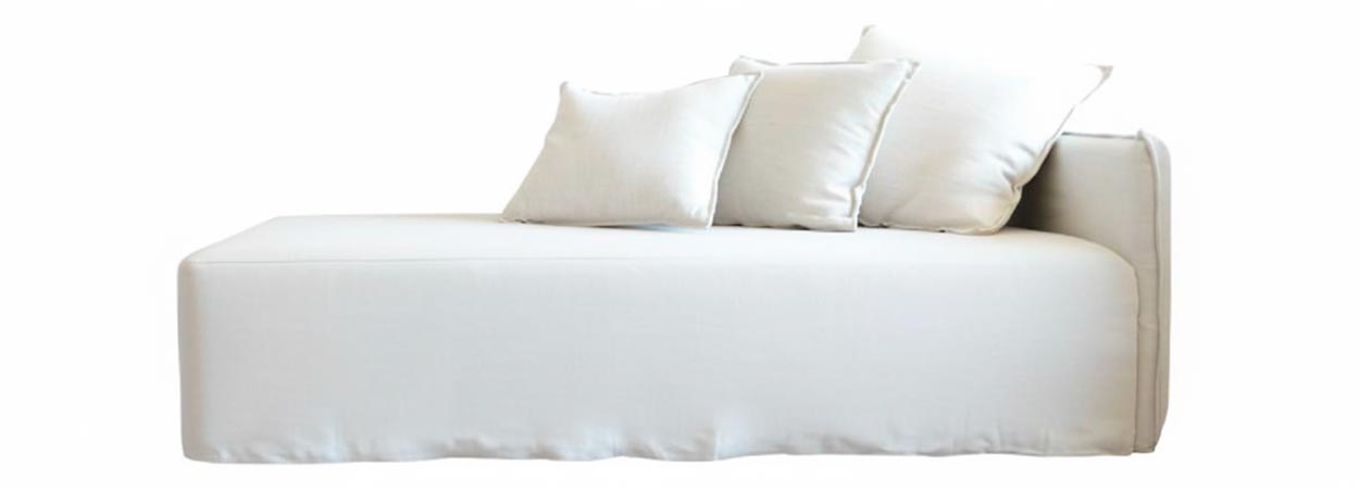 EL sofá Luz es un Chaise Lounge de look elegante, moderno por su cojín de asiento incorporado al cuerpo y práctico por su funda lavable. Es ideal para dormitorios, salitas de estar o espacios pequeños.